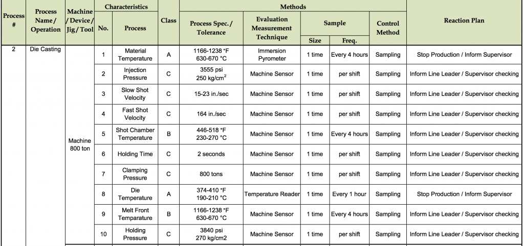This the basis for a good process control plan — the central document that the factory should use to drive the process’ capability up (in other words, improve process controls so as to get better product quality).
